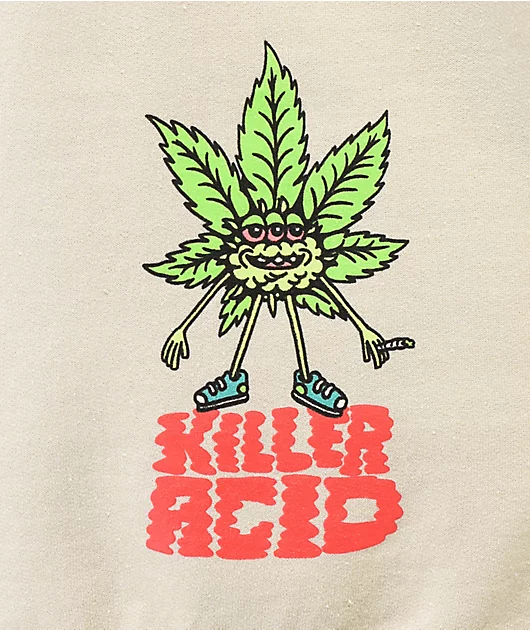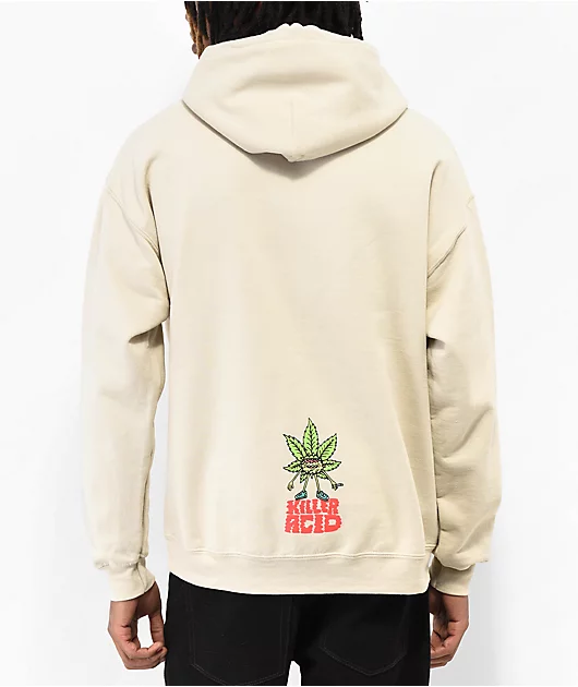 From Killer Acid comes the Drug Test hoodie in a natural colorway, showing a graphic of different drugs taking a test across the chest; adding pops of color in red, green and orange. This pullover hoodie comes with a kangaroo pouch pocket for storage, com
