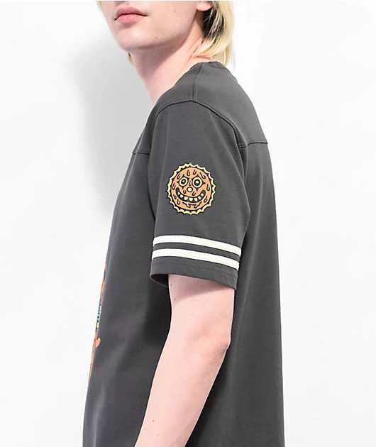 Killer Acid brings the Dusk Till Dawn t-shirt in a black wash colorway, showing off a colorful screen-printed graphic across the chest and left shoulder depicting classic killer acid-style artwork. This tee is made from a durable midweight cotton material