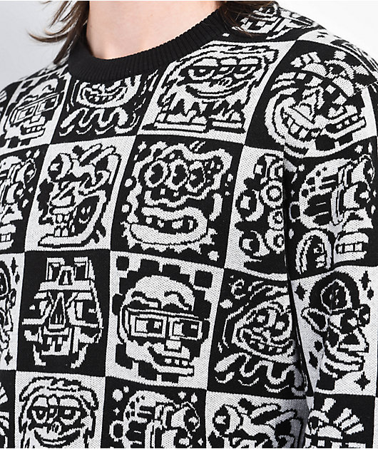The Heads sweater from Killer Acid is made of a soft cotton-poly blend and boasts sublimated faces over black and white checkerboard patterning throughout. This sweater has a relaxed fit with black, ribbed hems on the collar and sleeves for a comfy, casua