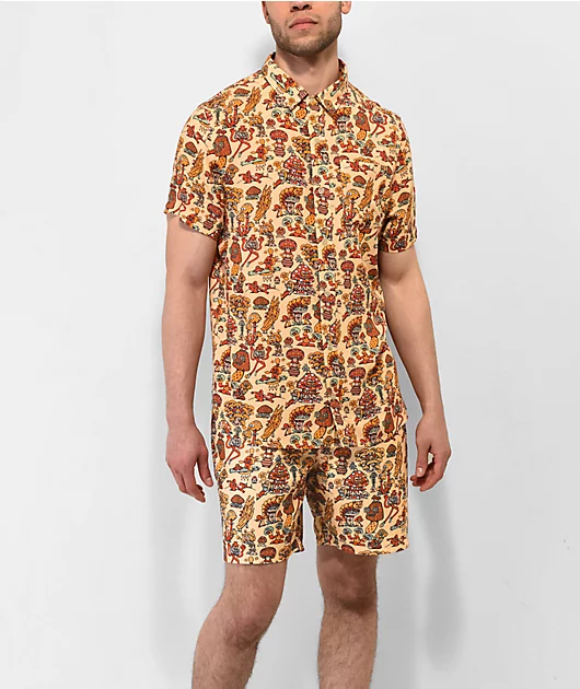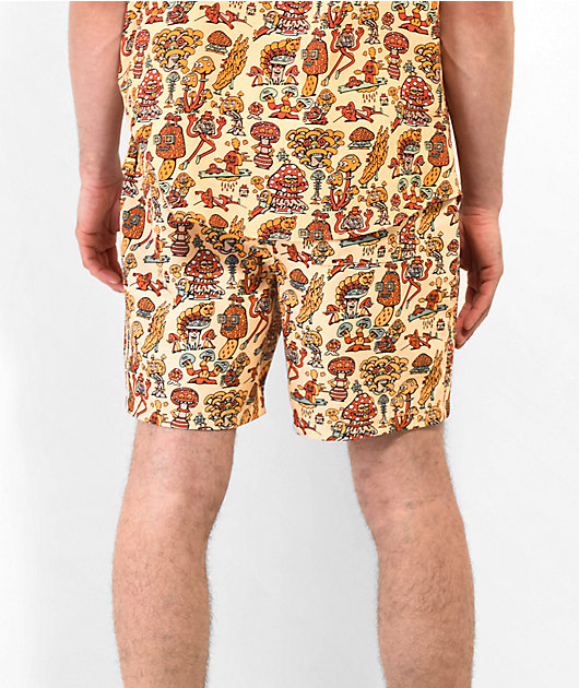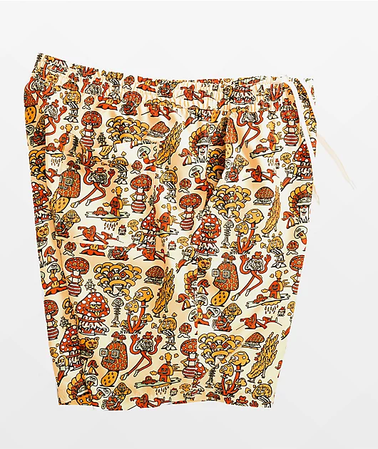 Killer Acid Mushroom Friends Tan & Orange Board Shorts