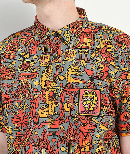 Killer Acid Party Animal Grey Short Sleeve Button Up Shirt