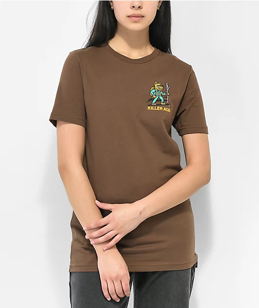 Made from soft, lightweight cotton, and featured with a crewneck collar and regular fit, the Take A Hike Killer Acid t-shirt has a classic look and feel that is easy to pair with a variety of tops and bottoms. This Killer Acid tee comes in chestnut brown