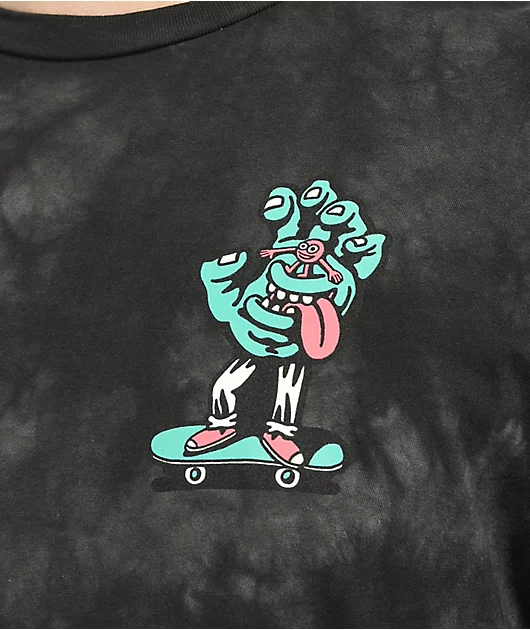 The Crystal Hand t-shirt from Killer Acid x Santa Cruz comes in a long sleeve construction with black tie dye throughout and a screen-printed graphic on the left of chest boasting Santa Cruz’s Screaming Hand logo with a smaller monster situated on its up