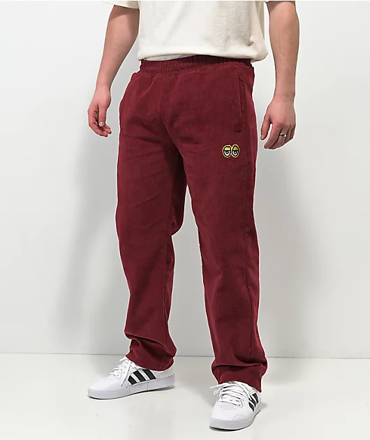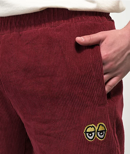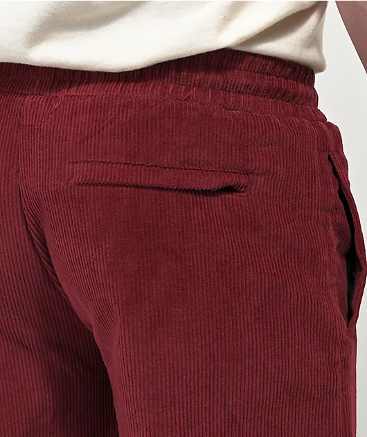 Krooked Kords Burgundy Corduroy Elastic Waist Skate Pants