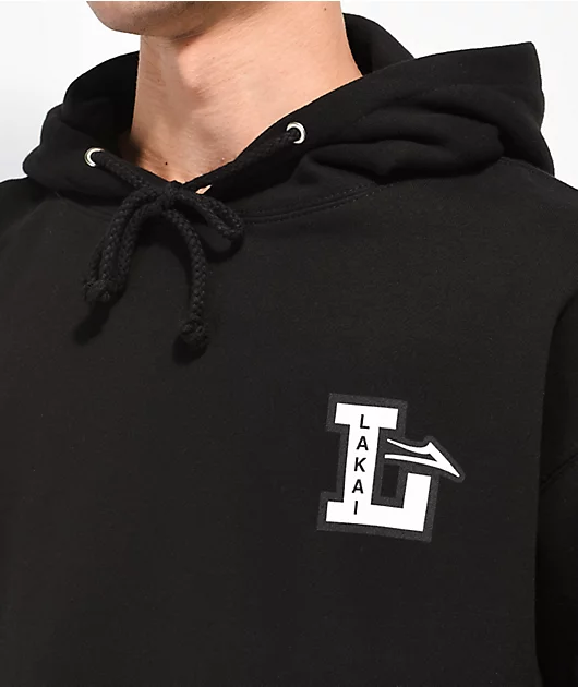 In a sleek black colorway comes the Letterman hoodie from Lakai, showing off branding left of chest in white for contrast. This hooded sweatshirt offers an adjustable drawstring hood, coming complete with a kangaroo pouch pocket for storage.