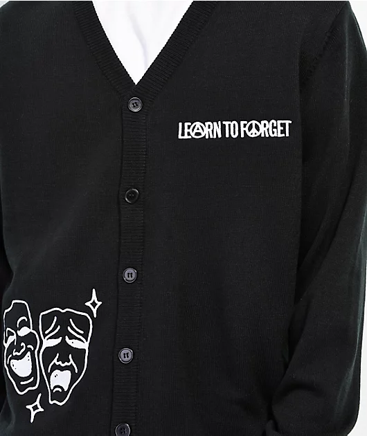 The Cry Later cardigan from Learn To Forget comes in a black colorway with a v-neck collar and full button-up closure for a classic look. This 100% cotton cardigan is adorned with white brand script on the left of chest and theater masks on the lower righ