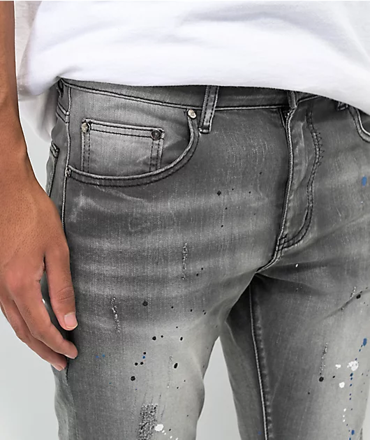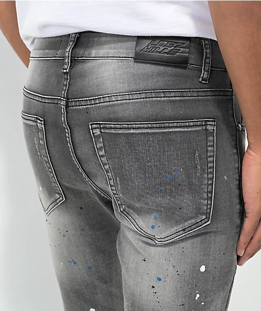 From Lost Hills come the Ripped Paint skinny jeans in a grey colorway, featuring distressed accents along the knees and paint splatter throughout. With metallic silver hardware throughout and a zip-fly closure, the jeans are a perfect wardrobe upgrade.