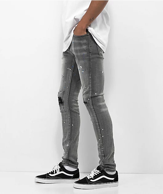 Lost Hills Ripped Paint Grey Skinny Jeans