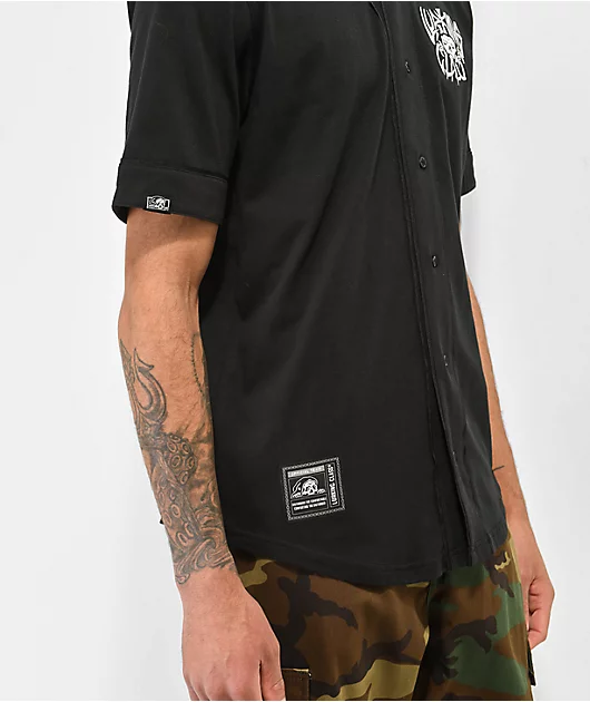 From Lurking Class by Sketchy Tank comes the Bones baseball jersey in a black colorway, showing off the brand name across the back along with a screen-printed graphic off a skull and cross bones for a savage look. This sports jersey is made from a soft ye