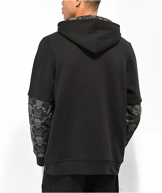 Lurking Class by Sketchy Tank Bones Layered Black Hoodie