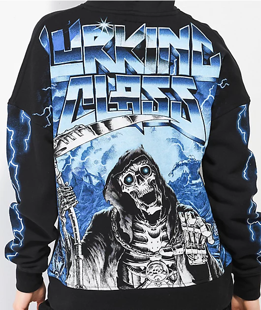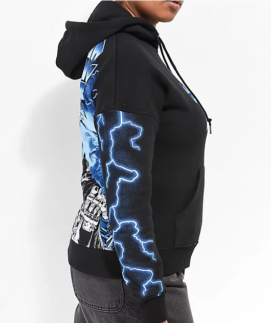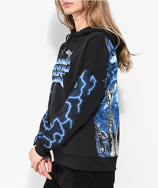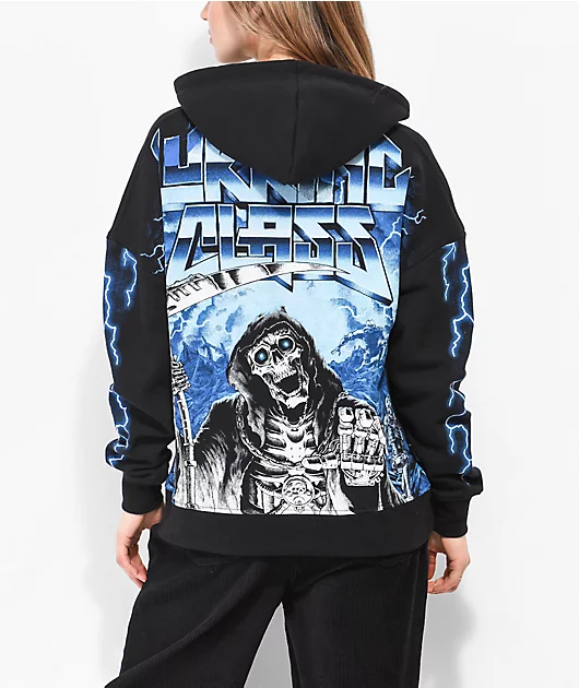 From Lurking Class by Sketchy Tank comes the Cyborg hoodie in an easy to pair black colorway. Displayed on the chest is the brand name in a vintage metallic font that brings on memories of the 70’s while on the back is the screen-printed image of cyborg w