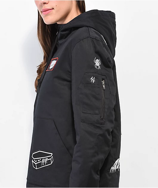 Lurking Class by Sketchy Tank brings the DIY Patch jacket in a black colorway, displaying various patches and embroidered images throughout in a classic Lurking Class style. This unique winter coat features a soft cotton shell, joined by a durable polyest