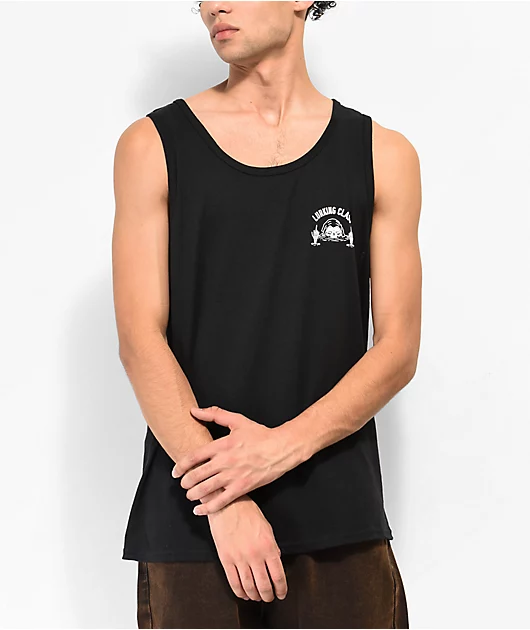 In a sleek black colorway comes the Sink Or Swim tank top from Lurking Class by Sketchy Tank, showing the brand name left of chest along with a graphic of the Lurker. On the back of this summer top is a larger graphic of the Lurker with script that reads
