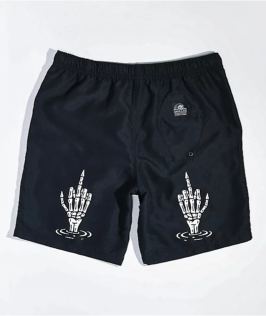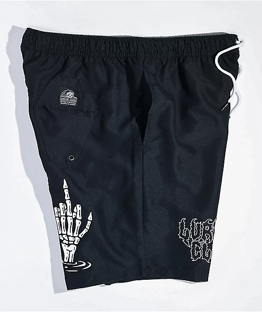 From Lurking Class comes the Sinking Board Shorts in the black colorway; the moisture wicking polyester fabrication of the swim trunks features screen printed Lurking class branding as well as a skeleton motif on the front and back of the legs. The linerl