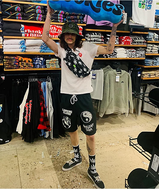Nothing says leisure quite like the comfy and modernized World Wide 2 black board shorts from Lurking Class by Sketchy Tank. These shorts are made from 100% polyester for a lightweight and fast-drying fit, with mesh-lined front hand pockets, while the bac