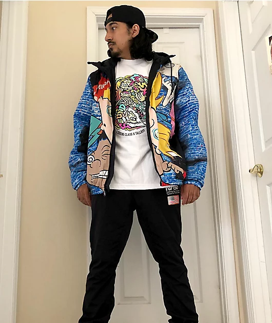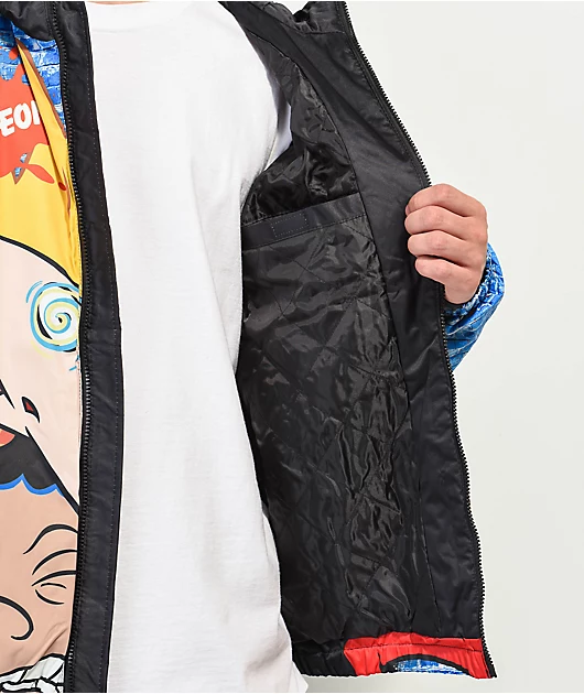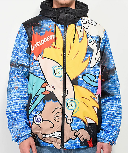 The Trippy windbreaker jacket from the Members Only x Hey Arnold collaboration comes in a black colorway with trippy, sublimated Hey Arnold graphics. This windbreaker jacket has full zip up closure and a lightweight construction with elastic sleeve cuffs
