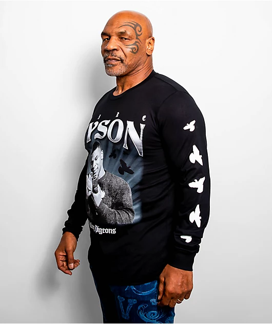Mike Tyson Rolling Pigeons Black Long Sleeve T-Shirt