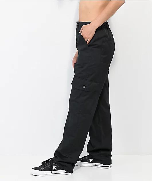With a relaxed straight leg construction, the Othello cargo pants by Monet Skateboards come in an easy to pair black colorway. The black cargo pants have a classic zipper fly closure, hand pockets, seat pockets, and cargo pockets located along the th