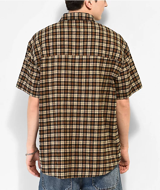Monet Skateboards Push It Brown Short Sleeve Flannel Shirt
