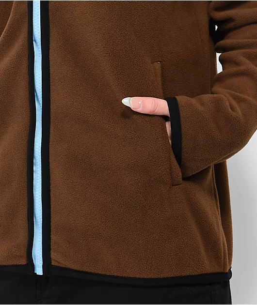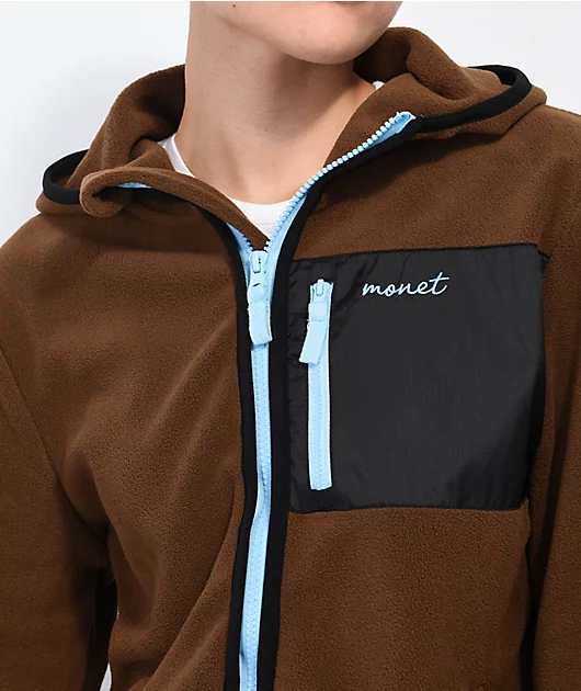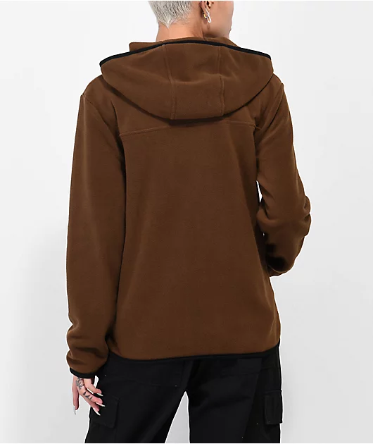 The Tobey fleece zip jacket from Monet comes in a brown colorway, which can be layered with outerwear or worn alone. With a lightweight hooded construction, the cozy jacket boasts contrasting light blue zipper accents, as kangaroo hand pockets, a zipped c