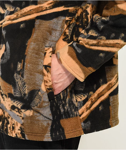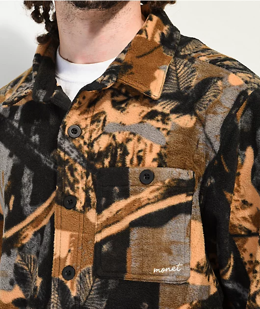 From Monet skateboards comes the Tricks jacket, with a thick micro fleece construction. A brown and beige hunting camo motif is sublimated throughout the fleece shacket, as it features dual chest pockets, hand pockets, and a fold over collar for a casual,