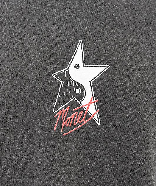 Coming in a unique black wash, the Yin Yang Star t-shirt from Monet Skateboards features a screen-printed star with red brand lettering centered on the chest. With a loose vintage-inspired silhouette, the washed Monet tee adds a worn-in look and feel to y