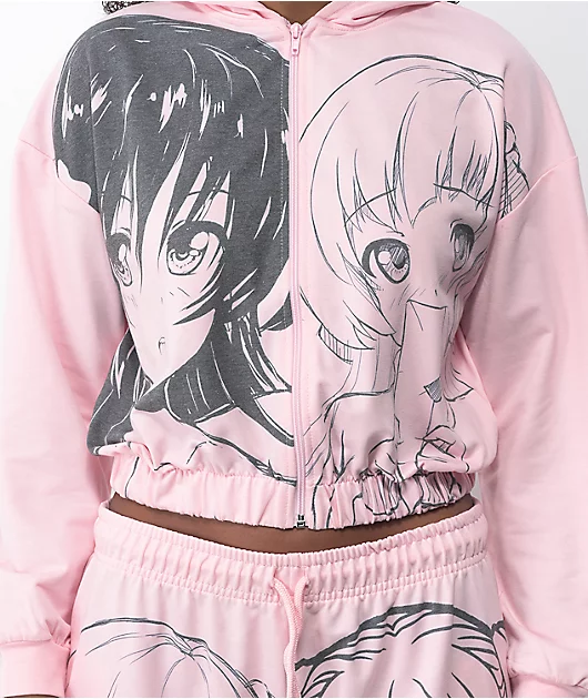 Throw some fresh anime vibes into all your favorite ‘fits with the NGOrder Manga Anime pink crop hoodie. This hoodie comes in a cropped silhouette for fashion-forward vibes, while the bright pink colorway is complemented by anime woman faces on either sid