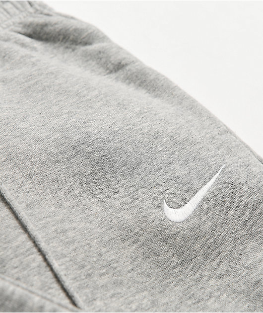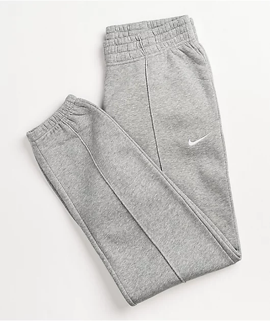 The Nike Sportswear fleece sweatpants come in a light grey colorway, with pleated seams down the front of the legs. These Nike sweats have a fleece-lined interior and elastic waistband for comfort, and are finished with an embroidered Nike Swoosh below t