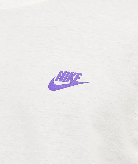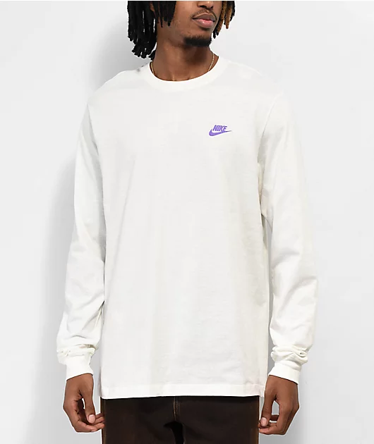 The Camo long sleeve t-shirt from Nike Sportswear comes in a white colorway and is made from exceptionally soft cotton. The shirt features a screen-printed Nike Swoosh logo at the left chest, as well as on the back with a grey camo background.