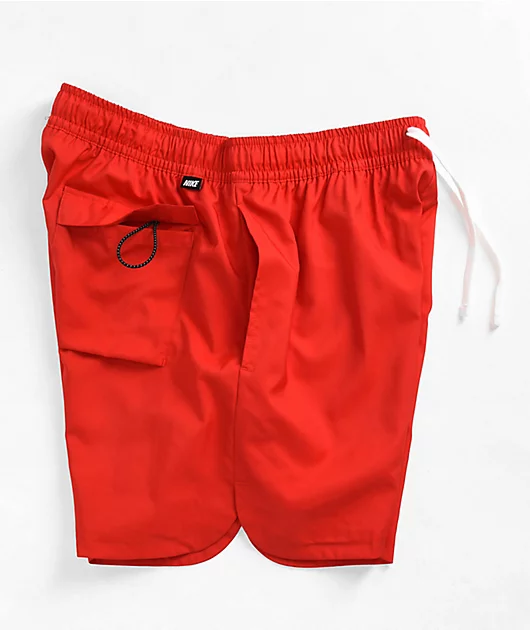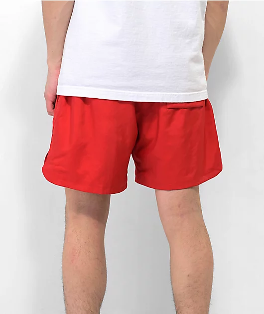 From Nike Sportswear comes the Club flow shorts in a bright red colorway, showing the brand name embroidered on the left thigh in white for contrast. These woven athletic shorts come with a mesh-lining for breathability, complete with an elastic waistband