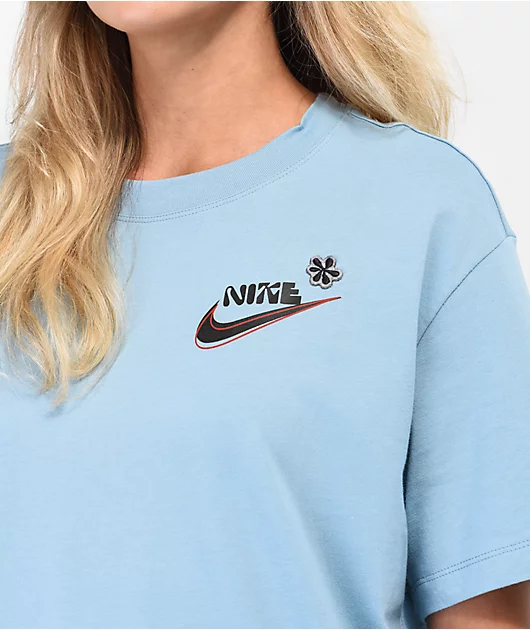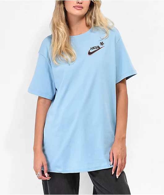 Coming in a worn blue colorway, the Fiber 2 t-shirt from Nike Sportswear features abstract floral imagery with Nike branding on the left chest and back. Made with sustainable algae-based inks, the Fiber 2 t-shirt has a loose drop-shoulder silhouette, and
