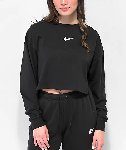 Nike Sportswear Swoosh Black Long Sleeve Crop T-Shirt