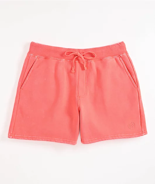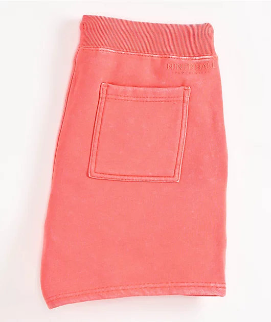 Ninth Hall Fundamentals presents the Rose sweat shorts in a pink washed colorway. Above the left back pocket, there is silicone branding as well as above the left leg opening.