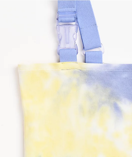 Add a little interest to your sunny-day ensembles with the Lyleson buckle strap tie dye tank top from Ninth Hall! The light blue, yellow, and green tie-dye colorway adds a splash of color to the look, while the tube-style silhouette and cropped hemline ke