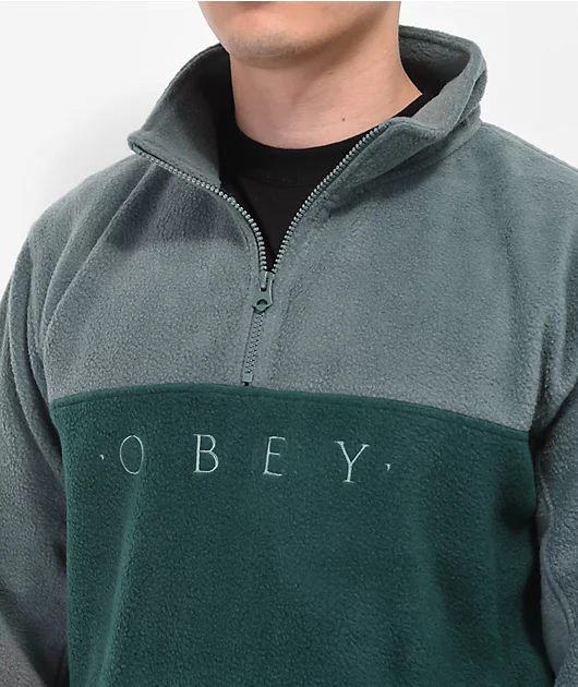 Obey Channel Cedar Green Mock Neck Fleece Sweatshirt