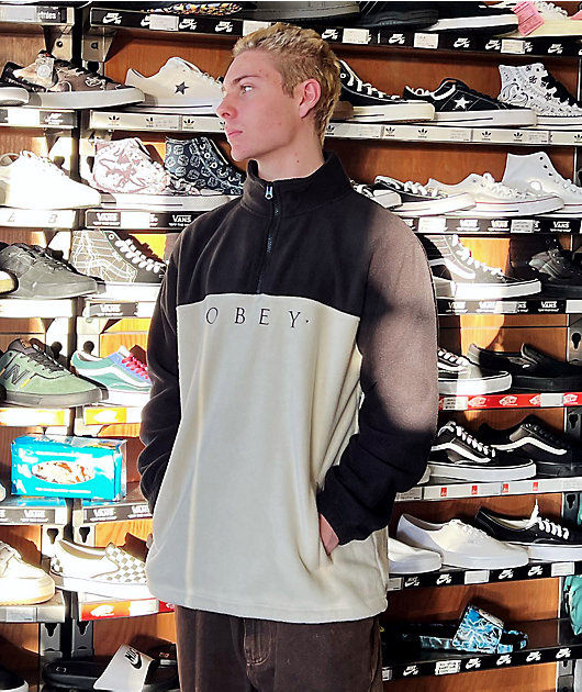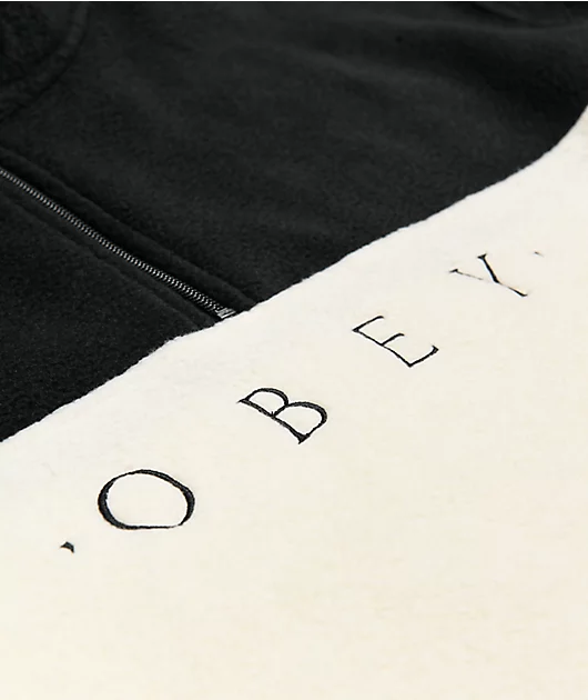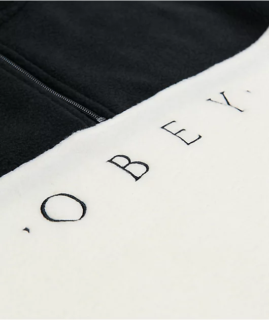 Pick up some two-tone style for your outerwear collection with the Obey Channel white and black tech fleece sweatshirt! This colorblock design features black sleeves, collar and upper chest, while the lower chest and abdomen make up the white half for som
