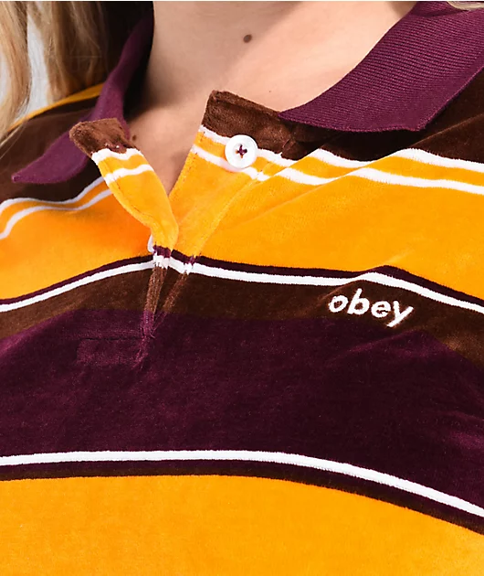 Obey Georgia Brown, Purple & Yellow Crop Long Sleeve Polo Shirt