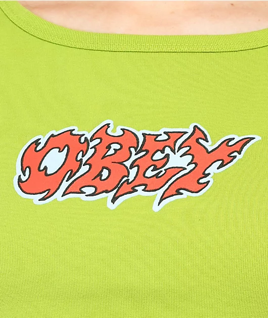 Obey Jess Flame Logo Green Long Sleeve Crop T-Shirt
