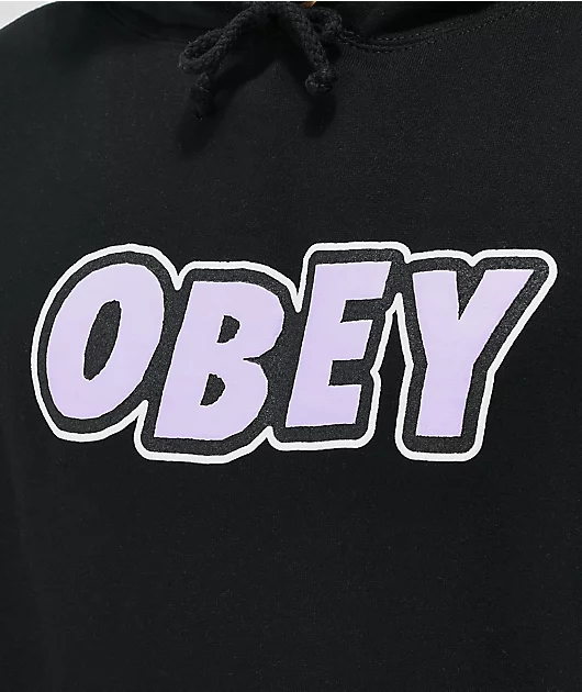 Blend a bold, branded touch into your cool-weather repertoire with Obey’s Jumbled black hoodie! The sweatshirt’s soft, fleece-lined interiors keep it comfortable and warm, while the drawstring-adjustable hood and kangaroo pouch pocket on the hoodie’s fron