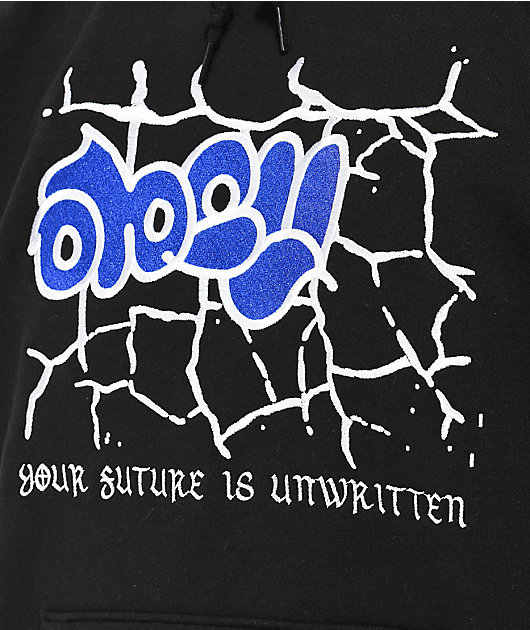 From Obey, the Your Future hoodie comes in a versatile black colorway. Blue graffiti lettering is embroidered on the chest, above gothic lettering which reads \”Your future is unwritten.\” Made from a cozy heavyweight blend, the Obey hoodie is finished with