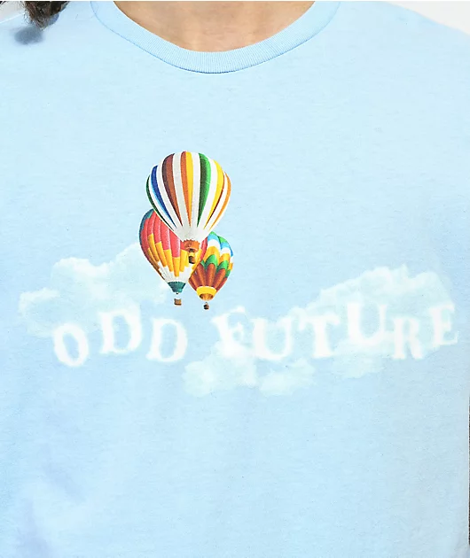 The Balloon Ride t-shirt from Odd Future comes in a light blue colorway, with hot air balloons and cloudy white brand lettering screen-printed on the chest. The Odd Future tee has a ribbed crew collar, and is finished with a printed neck label for comfort