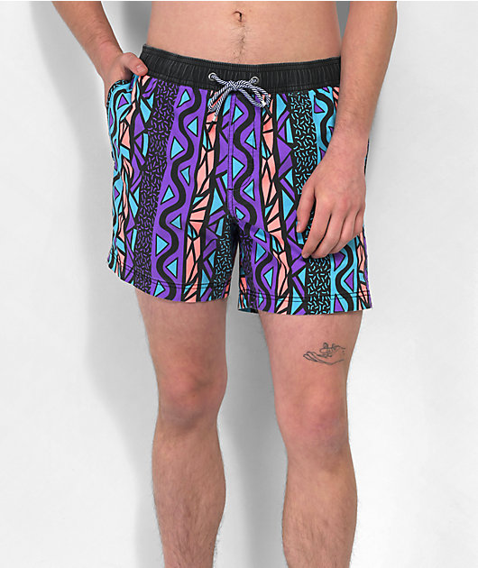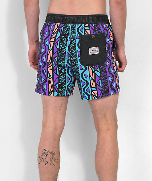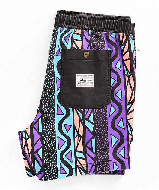 The Maui Wowie board shorts from Party Pants feature come in a black colorway, with purple and blue 90s-inspired pattern throughout. Made from quick-drying fabric, the swim trucks are constructed with a liner-less design, simple 3-pocket layout, and an el