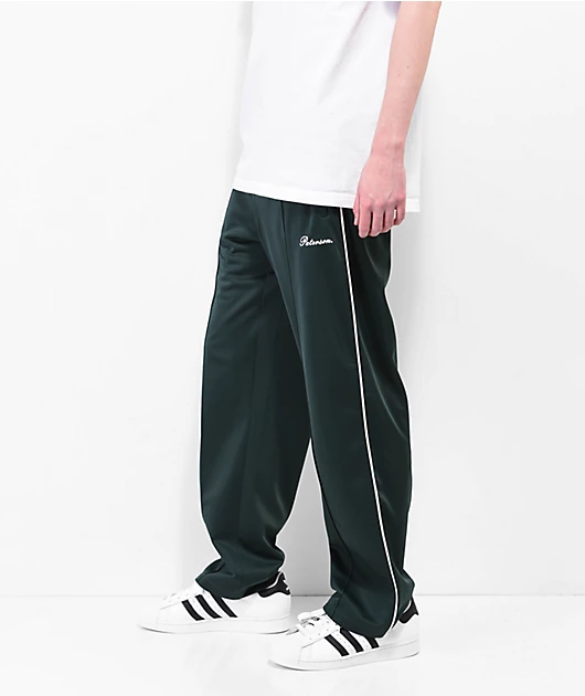 From Paterson, the Courtside track pants come in a dark green colorway with cream piping along the sides. The pleated sweatpants boasts a 3-pocket design with zippers, while a brushed lining and an elastic waistband ensure all-day comfort. With embroidere