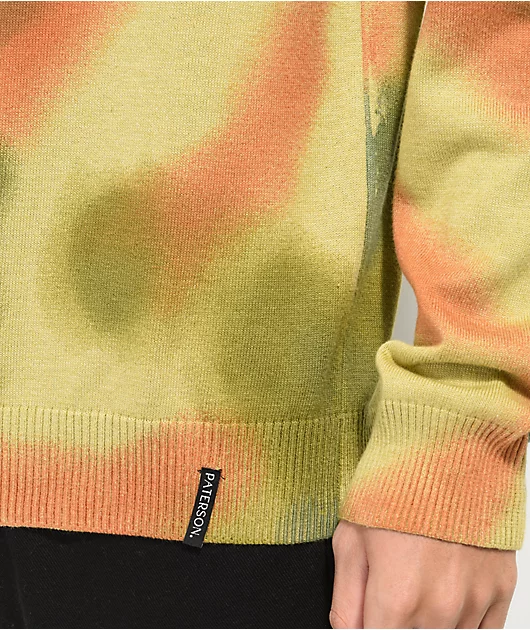 This tie dye Paterson sweater is made of a cotton blend and features green, orange, and teal colors throughout as well as a relaxed fit for comfortable, all day wear.