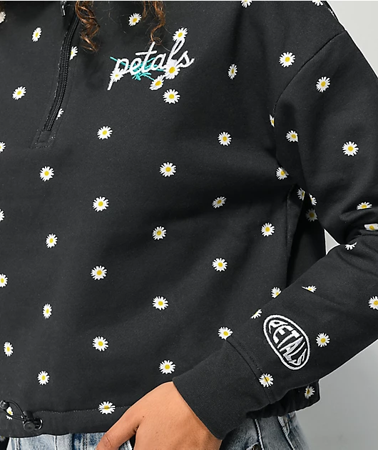 Petals by Petals and Peacocks Daisy Garden Black Quarter Zip Sweatshirt