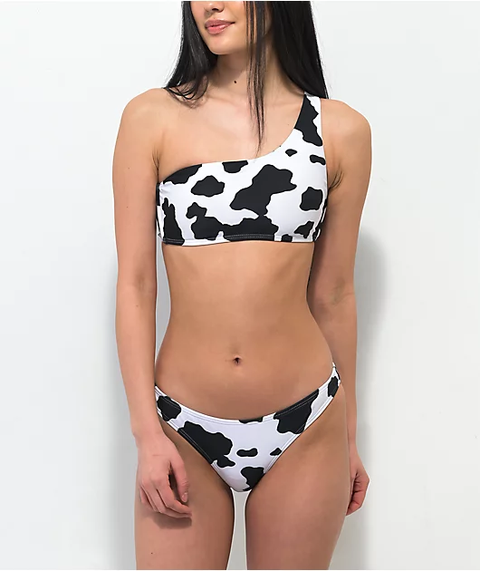 When it comes to bikini tops, Petals by Petals and Peacocks know how to impress with their Mood bandeau bikini top. It has an all-over black and white cow print design and is made of quick-drying polyester and stretchy, accommodating spandex, while the bu