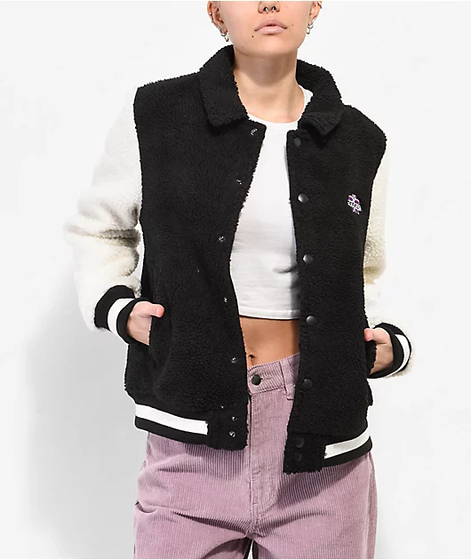 Petals by Petals & Peacocks Black & White Sherpa Varsity Jacket