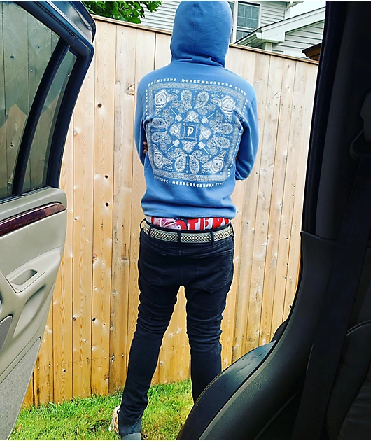 Add some chill color to your casual looks with the Bandana light blue hoodie from Primitive! This hoodie comes with a drawstring-adjustable hoodie, a kangaroo pouch pocket, and fleecy lining for extra comfort, while the light blue colorway adds some unobt