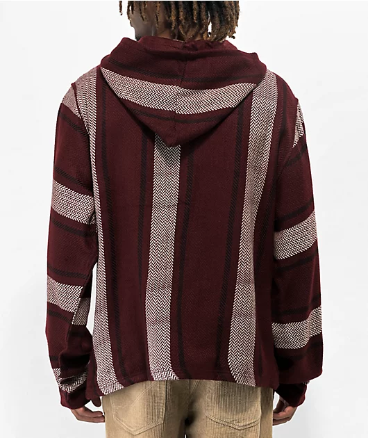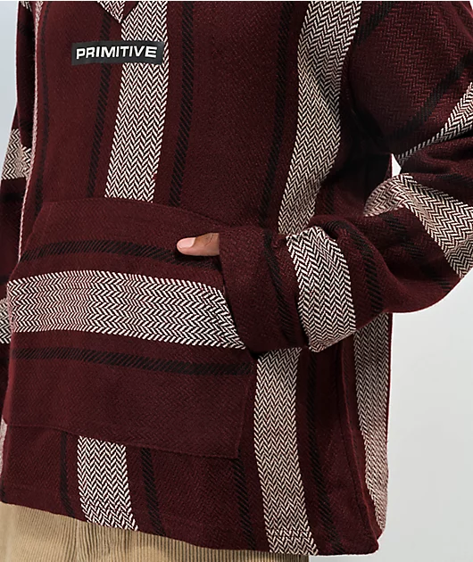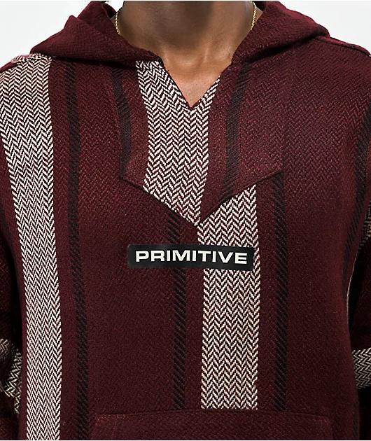 With a stylish woven construction boasting a herringbone pattern, the burgundy Primitive baja hoodie is made from a premium arcylic blend; making it an ultra-soft wardrobe staple. With a relaxed fit, a fixed hood, and a kangaroo pouch pocket on the front,