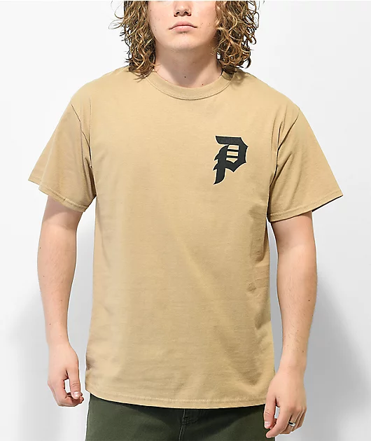 The Primitive Dirty P Buds t-shirt comes in a sand colorway. The classic Primitive P logo can be found on the left chest, while a screen-printed kush-inspired motif can be found on the back. The breathable midweight cotton tee is finished with a tagless c